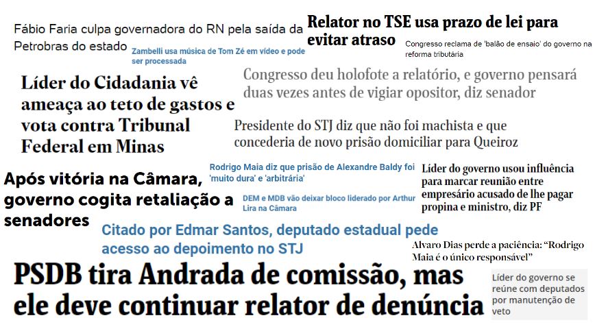 Ouso dizer: neste ponto, os news avoiders têm toda a razão! São inúmeros os casos em que os títulos começam por “Bolsonaro diz…” ou “Câmara vota…”. Os agentes das notícias sempre são os políticos. É como se o jornalismo se limitasse à órbita daqueles que foram eleitos a cargos públicos – sobre eles e paraeles -, sendo que muita gente nem lembra em quem votou nas últimas eleições.