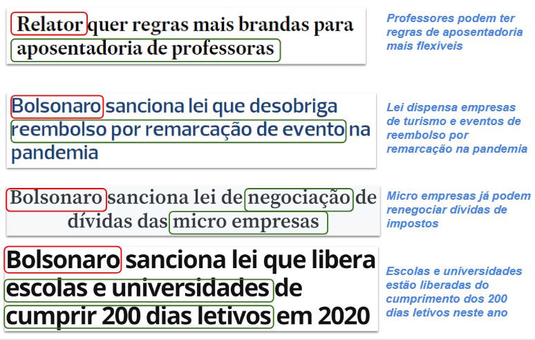 O fato de o presidente sancionar leis é recorrente e não impacta tanto na rotina de um cidadão quanto o efeito da lei sancionada. O agente da notícia não é o político, mas como o seu ato influencia na vida das pessoas.