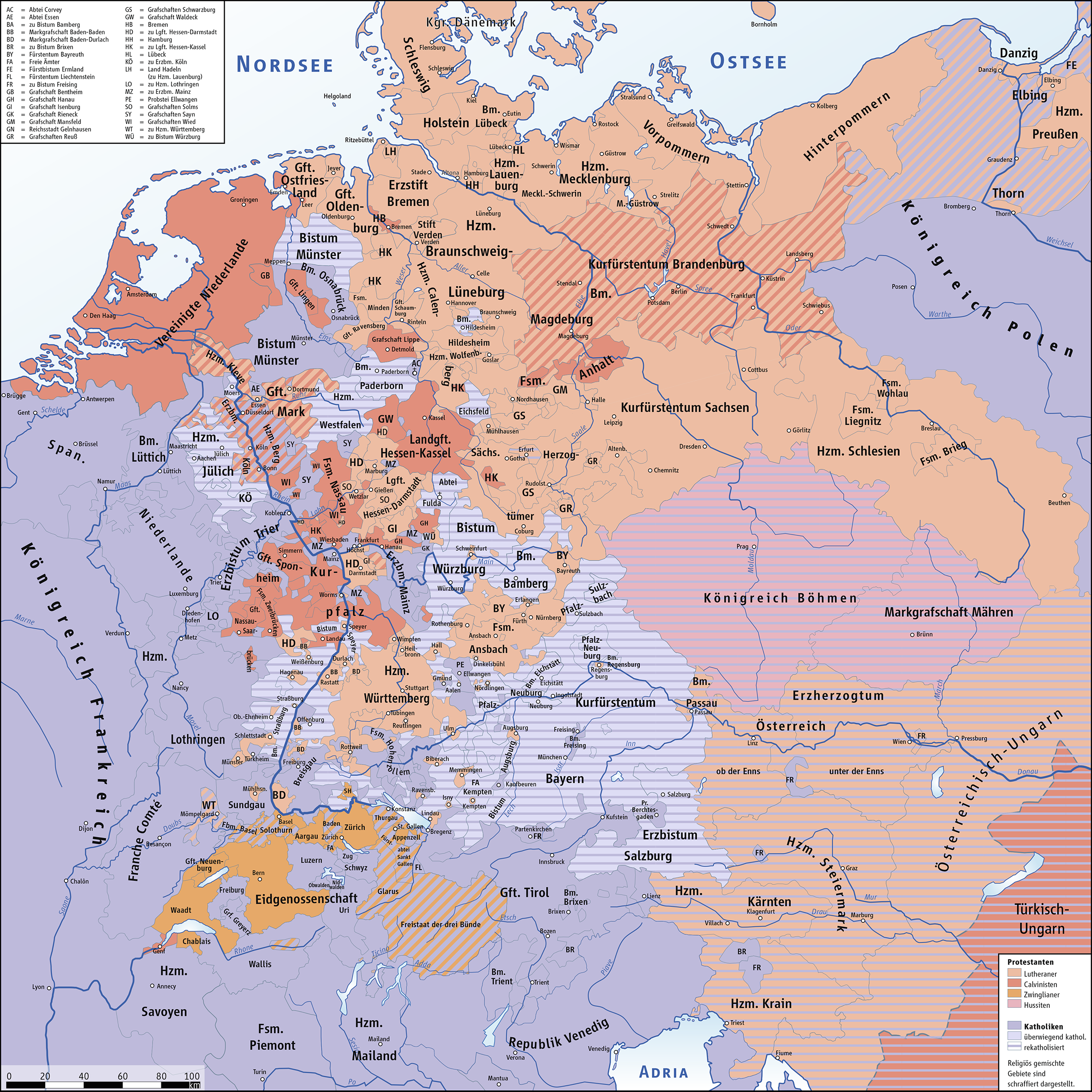 A França é o maior exemplo disso. Em tese, era de se esperar que a dinastia Bourbon apoiasse seus vizinhos Habsburgos com quem compartilhavam a fé católica. Como política de Estado, no entanto, era benéfico para a França manter os territórios da Europa Central divididos (a Alemanha só foi unificada dois séculos mais tarde, em 1871). Caso eles fossem unificados pela já dominante dinastia Habsburgo, dariam ao Sacro Império Romano as condições de conquistar o continente europeu e passariam, portanto, a constituir uma ameaça direta à soberania francesa. Após trinta anos de guerra, delegações de diversos países assinaram diferentes tratados que ficaram conhecidos como Paz de Westfália e cujos resultados não foram apenas pôr fim aos conflitos que tomaram conta da Europa, mas criar uma ordem internacional baseada na soberania da nação.